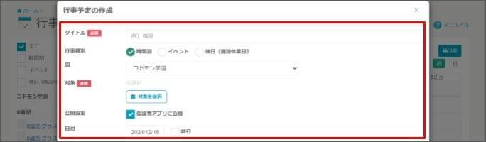 - 行事予定の詳細や対象を設定します。