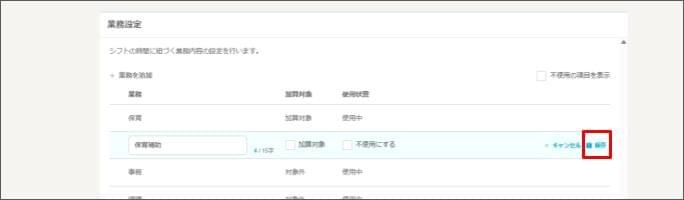 ※業務の「保育」は必須のため編集はできません。- 業務を追加したい場合は、[業務を追加] をクリックしてください。