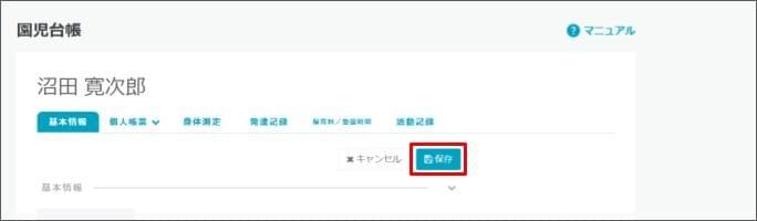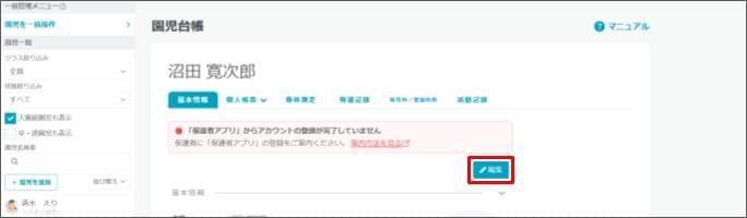 - 登録した園児(児童)の「基本情報」 > [編集] をクリックします。