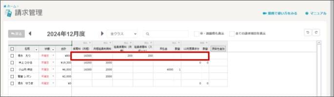 月次請求で請求を複数園児(児童)まとめて追加・修正する