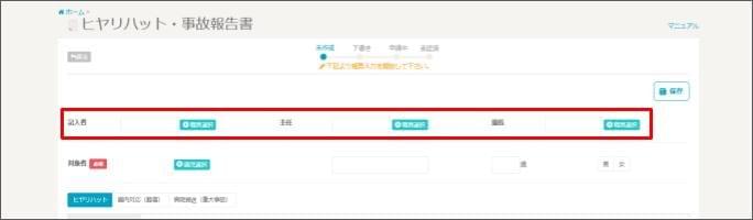 - [職員選択] をクリックし、記入者・主任・園長を選択します。<任意>