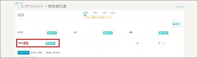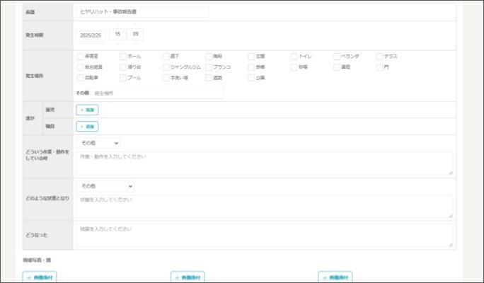 - [記録と計画] > [ヒヤリハット事故報告書] をクリックします。