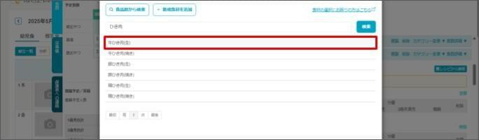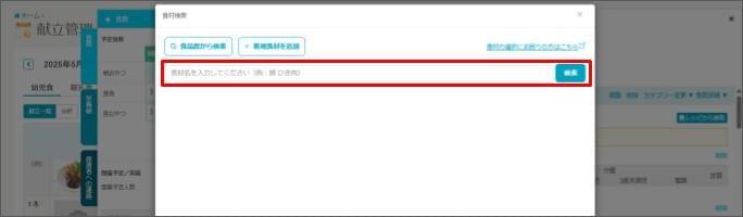 - [入力欄] に食材名を入力し、[検索] をクリックします。