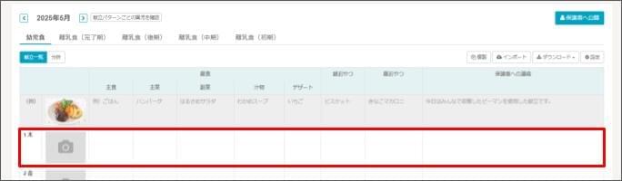 - 献立の入力を終えたら、[保存] をクリックします。