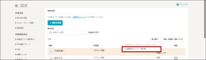 出退勤打刻のQRコードを全職員まとめて印刷する2026年1月5日 更新設定画面の操作は、設定機能の権限が「承認可能」であることが必須です。 [設定] をクリックします。 [職員管理] をクリックします。 [印刷] > [出退勤QRコード一括印刷] をクリックします。 表示された印刷ページを印刷します。