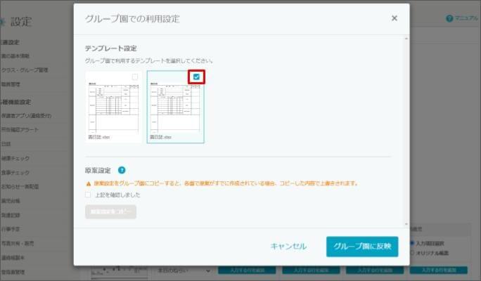 【設定】各グループ園(施設)へオリジナルのテンプレートや原案を共有する