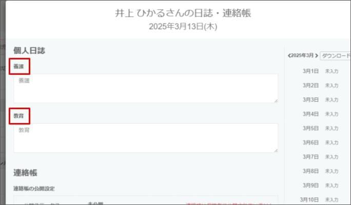 ※保育ドキュメンテーションを利用の場合は、上記項目に加え「子どもの様子」も基本項目になります。