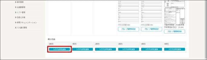 - 「個人日誌」で入力項目を追加したい学年の [入力する列を追加] をクリックします。