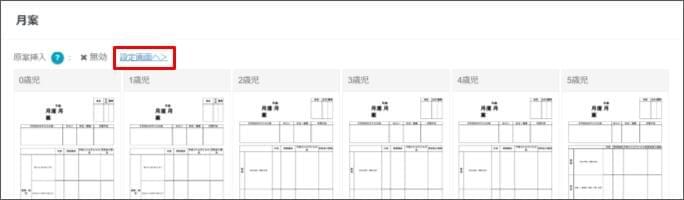 - 原案の登録をしたい日誌・指導案の [設定画面へ>] をクリックします。