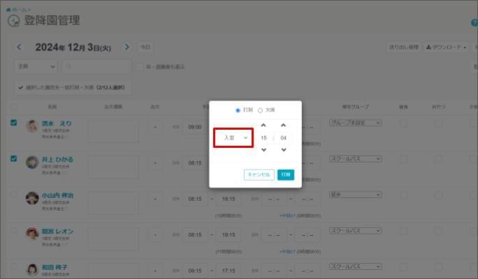 数日単位で複数園児(児童)の打刻をまとめて登録したい場合などにご利用ください。