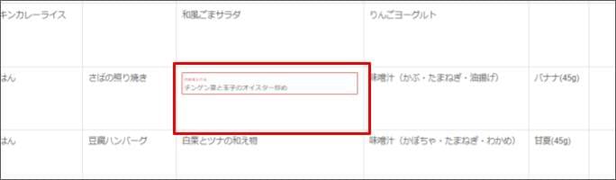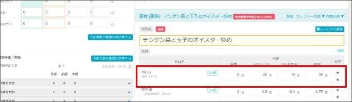 - 複製された料理の食材内容からアレルギー対応の必要な食材を除去・入替します。