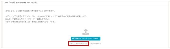 - [サンプル書式のダウンロード] をクリックし、CSVォーマットをダウンロードします。