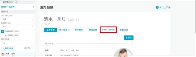 - [園児(児童)名] をクリックします。