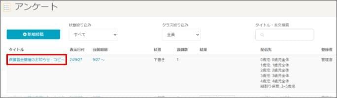 ※コピーされたアンケートのタイトルは、区別の為に元のタイトルの後ろに「コピー」が付加されるので、公開時に修正してください。