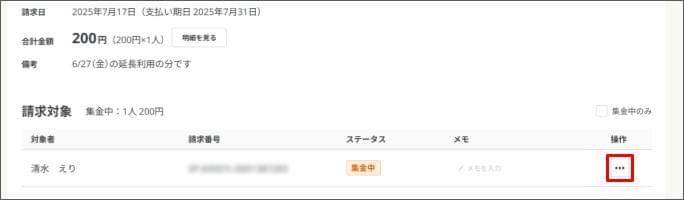 - 「請求の対象」の [三点メニュー] をクリックします。