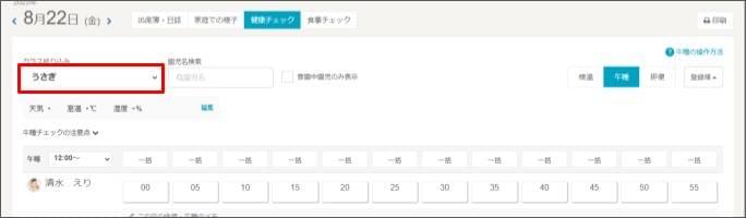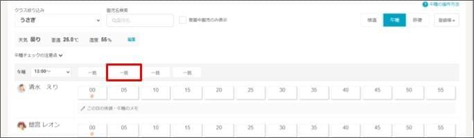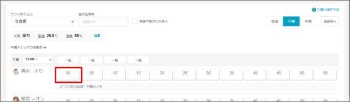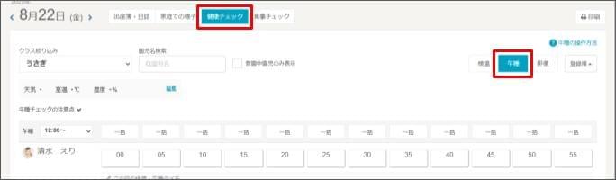 - 一括で起床:園児が起きた場合は、チェックを付けます。