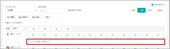 - 園児のその日の体調や午睡に関する特筆事項がある場合は、[この日の体調・午睡のメモ]をクリックして内容を入力し、[保存] をクリックします。