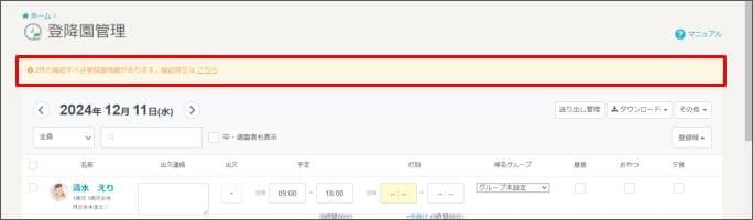 - アラート内容に沿って、園児(児童)の打刻や欠席状況を正しく入力します。