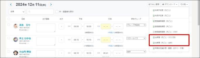 - 選択した月の出席簿がクラスごとにダウンロードできます。