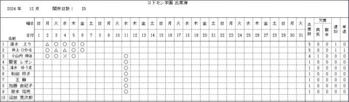 - 出席簿(月ごと・全体)