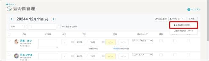 - 右上の [その他] > [延長保育利用状況] をクリックします。