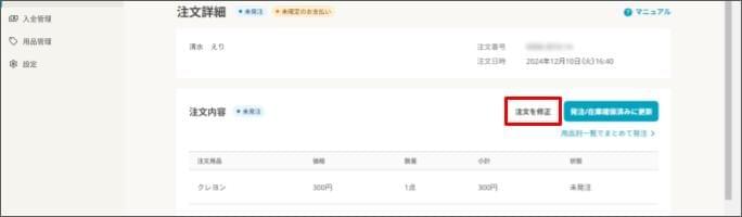 - 「注文管理」からキャンセルしたい注文をクリックします。