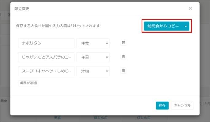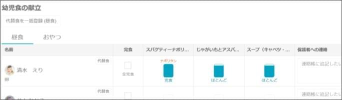 赤文字の献立名を修正する2026年2月25日 更新献立名を削除をするには、日誌&連絡帳の権限が「編集可能」であることが必須です。 赤文字が表示された園児(児童)の喫食量を確認します。※献立名を修正すると喫食量がリセットされるため、あらかじめ控えてください。赤文字が表示された園児(児童)の [代替食] をクリックします。 赤文字が表示された園児(児童)の [代替食] をクリックします。 対象の献立名を修正します。 [保存] をクリックします。