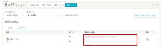 個別で保護者へ連絡事項がある場合は、入力します。