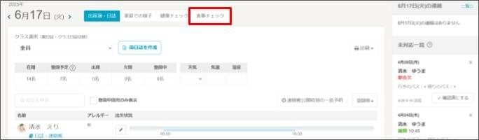 - [食事チェック] をクリックします。