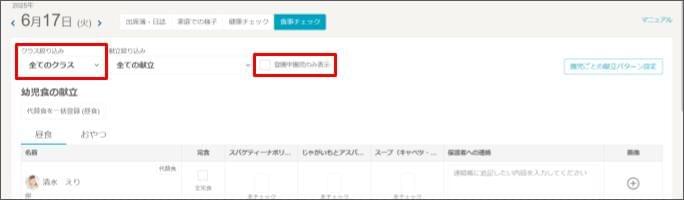 - 登園中の園児のみ表示したい場合は、[登園中園児のみ表示] にチェックを付けます。