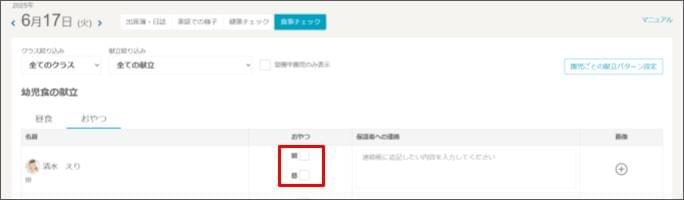 - おやつを食べた時間帯にチェックを付けます。