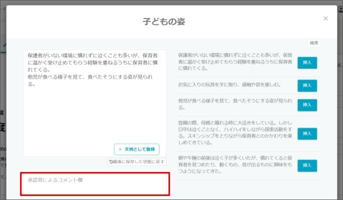 ※全体に対してのコメント欄は指導案の作成状態が「下書き、申請中、承認済」の場合に入力できます。