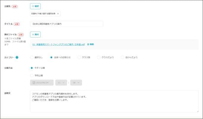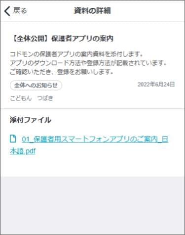 保護者アプリの見え方:資料室