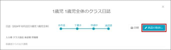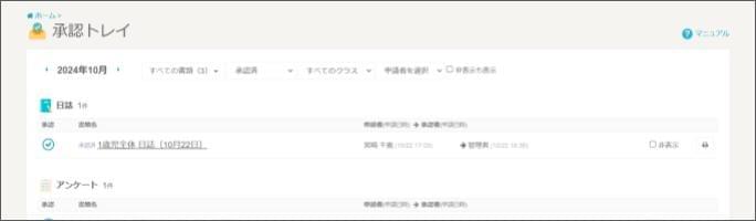 書類の承認の取消しをする2026年1月29日 更新各帳票の承認取り消しには、それぞれの書類に応じた権限が「承認可能」であることが必須です。 [承認トレイ] をクリックします。 [すべての状態] のタブから [承認済み] を選択します。 左上の [年月] をクリックし、確認したい年月を選択します。 承認を取り消したい書類をクリックします。 右上の [承認の取消し] をクリックします。 書類の右横にカーソルを合わせると表示される [承認の取消し] からも取り消しができます。