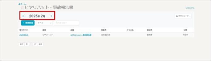 - [記録と計画] > [ヒヤリハット事故報告書] をクリックします。