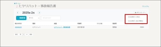 - 選択した月の報告書の情報を一覧でダウンロードできます。