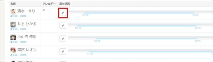 - 園児(児童)名の右側にある [鉛筆マーク] をクリックします。