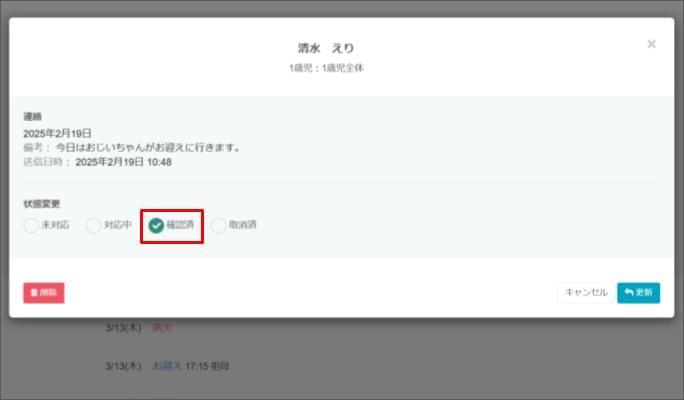 保護者アプリの見え方:保護者からの連絡の通知