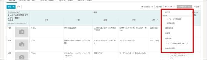 帳票をダウンロードする(給食管理)2026年1月28日 更新ダウンロードするには、給食管理の権限が「編集可能」であることが必須です。 [給食管理] > [献立管理] をクリックします。 ダウンロードしたい月、献立パターンのタブを選択します。 [ダウンロード] をクリックし、帳票を選択します。