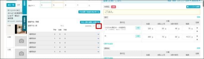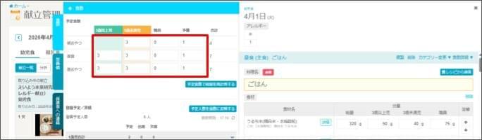 - 予定食数を登園(入室)実績に合わせたい場合は、予定食数を修正します。