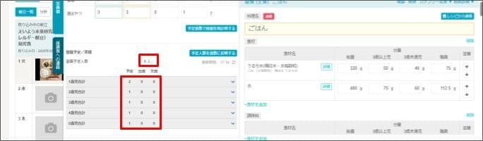 当日の食数を確認・修正する