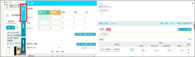- [給食管理] > [献立管理] をクリックします。