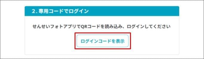 - 職員管理画面に戻り、「2.専用コードでログイン」の [ログインコードを表示] をクリックします。
