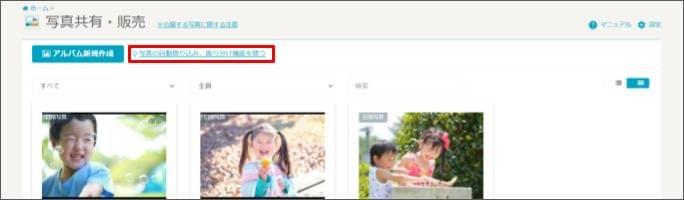 - [写真の自動取り込み、振り分け機能を使う] をクリックします。