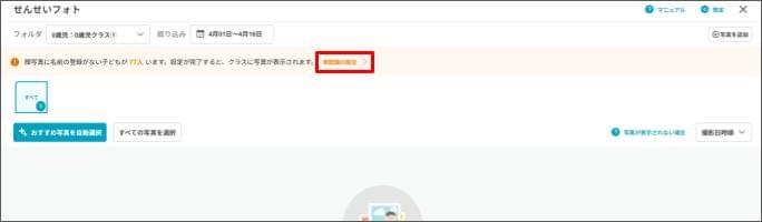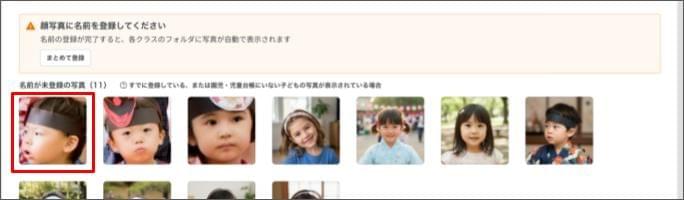 ※顔認識の設定が表示されない場合、しばらく待ってから再度お試しください。 - 顔写真に登録したい園児(児童)の写真をクリックします。