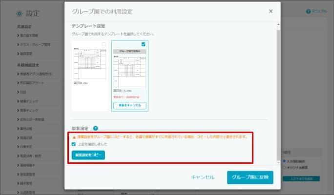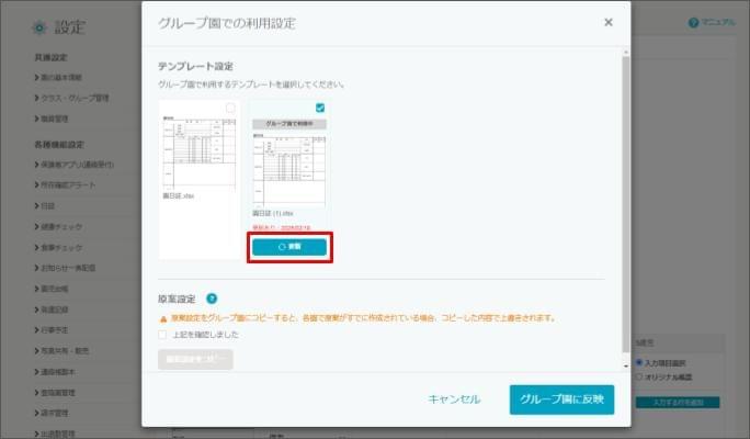 【設定】各グループ園(施設)へオリジナルのテンプレートや原案を更新する