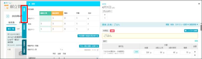 - 「登園(入室)予定/実績」の [予定人数を食数に反映する] をクリックします。
