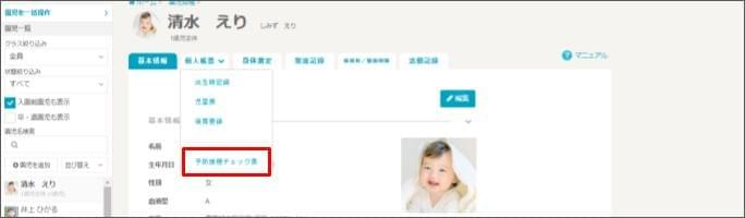 - [園児(児童)台帳] をクリックします。