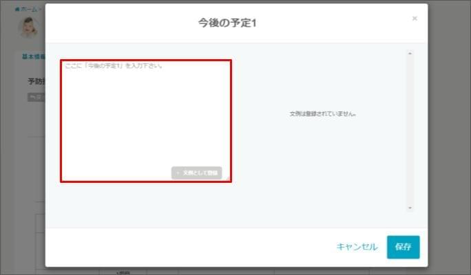 - 項目に対して直接入力するか、文例がある場合は [挿入] をクリックします。