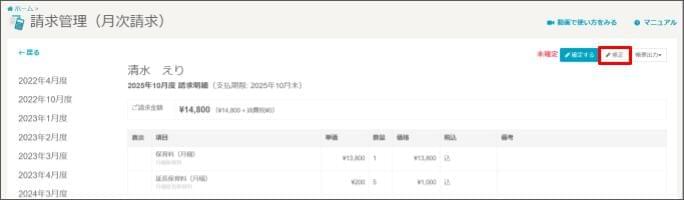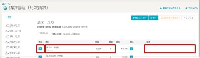 月次請求で請求を特定の園児(児童)のみ追加・修正する